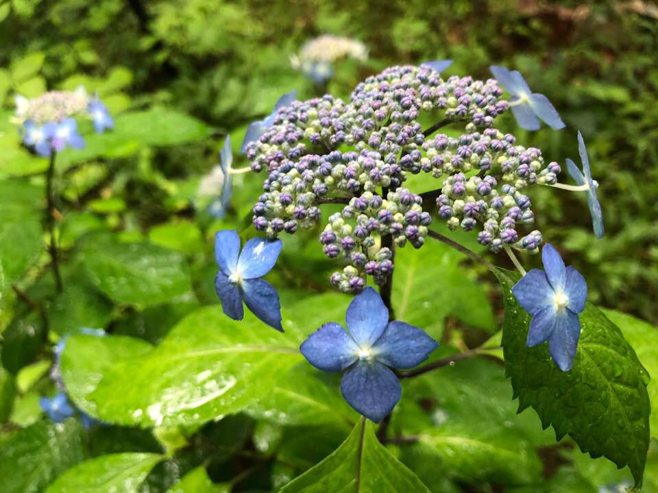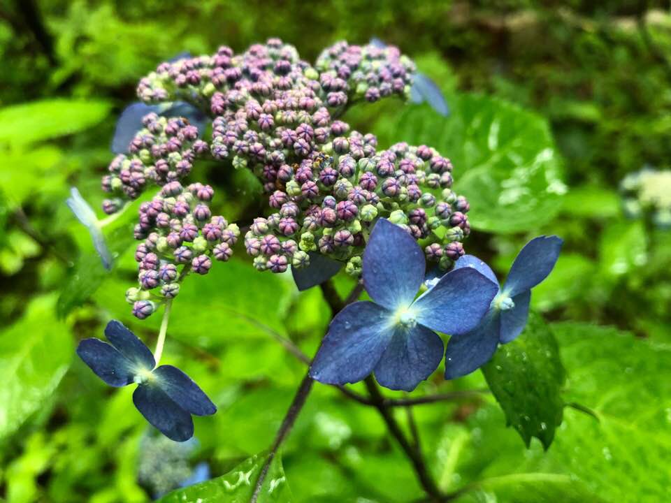 アジサイがもう咲いてた。雨とアジサイはよく合うね。